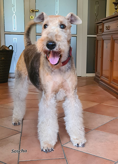 Seit Oktober 2011 lebt Olympia in der Nähe von St. Peter-Ording. Obwohl ich mich nur sehr schweren Herzens von ihr trennen konnte, habe ich sie meiner Freundin Hannelore anvertraut. die seit ihrer Kindheit von Airedales begleitet wird und auch auch im Alter nicht ohne diese Hunde leben möchte. Als Nachfolgerin für Hannelore's Peggy, die kurz vorher mit 13 Jahren friedlich eingeschlafen war, kam von meinen Hündinnen nur Lympi in Frage. Natürlich besuche ich sie häufig, wobei auch immer zwei meiner übrigen Hündinnen mitkommen.